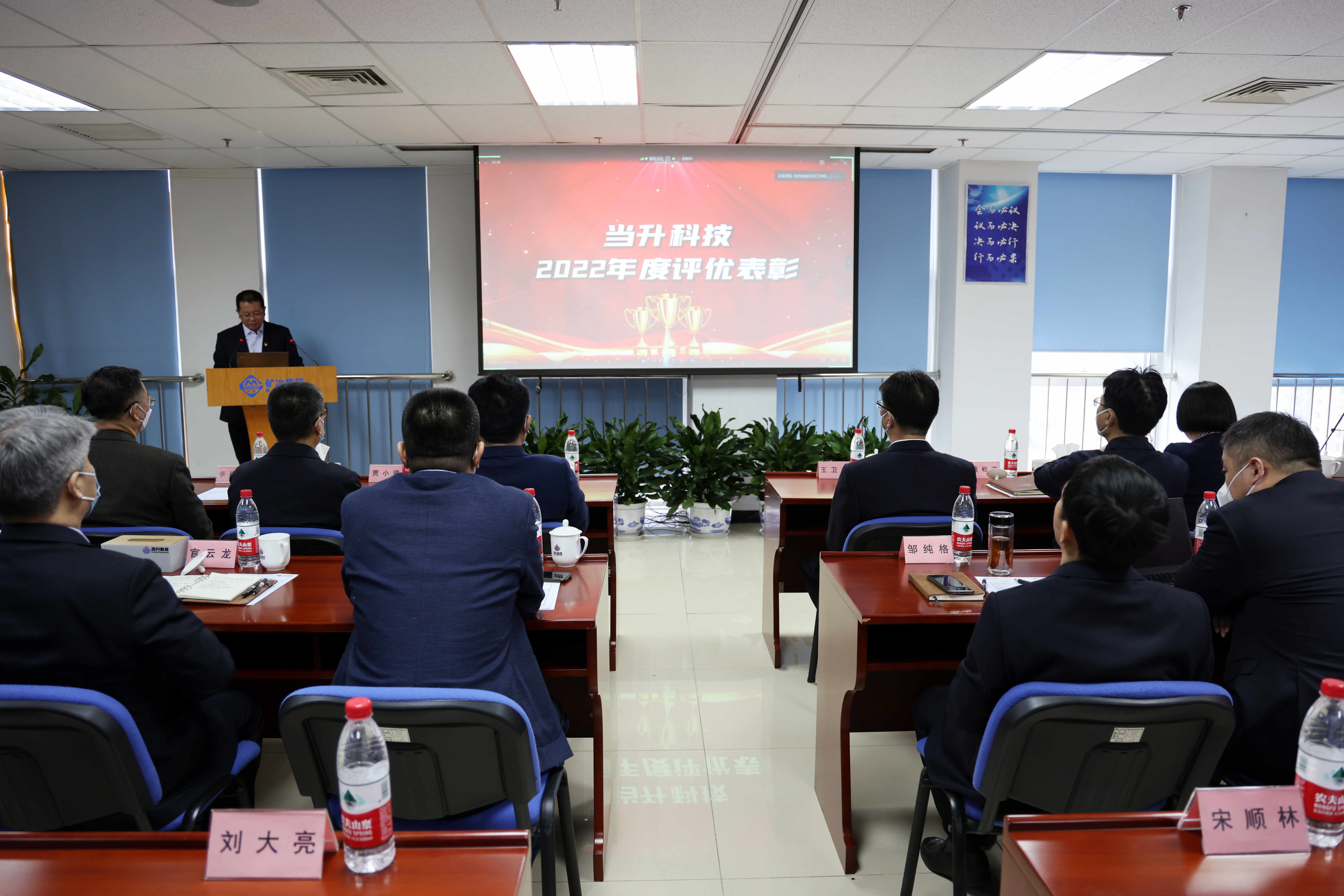 律回春暉漸,萬象始更新。2023年1月19日上午,當(dāng)升科技2022年度工作總結(jié)暨表彰大會在京隆重召開。礦冶集團黨委副書記、總經(jīng)理周洲,黨委副書記王衛(wèi)東,副總經(jīng)理黃松濤,總會計師馬繼儒,紀委書記薛松,副總經(jīng)理、公司董事長李建忠;公司獨立董事賈小梁、劉明輝,以及部分董事、監(jiān)事應(yīng)邀出席會議。會議由公司黨委副書記、副總經(jīng)理關(guān)志波主持。